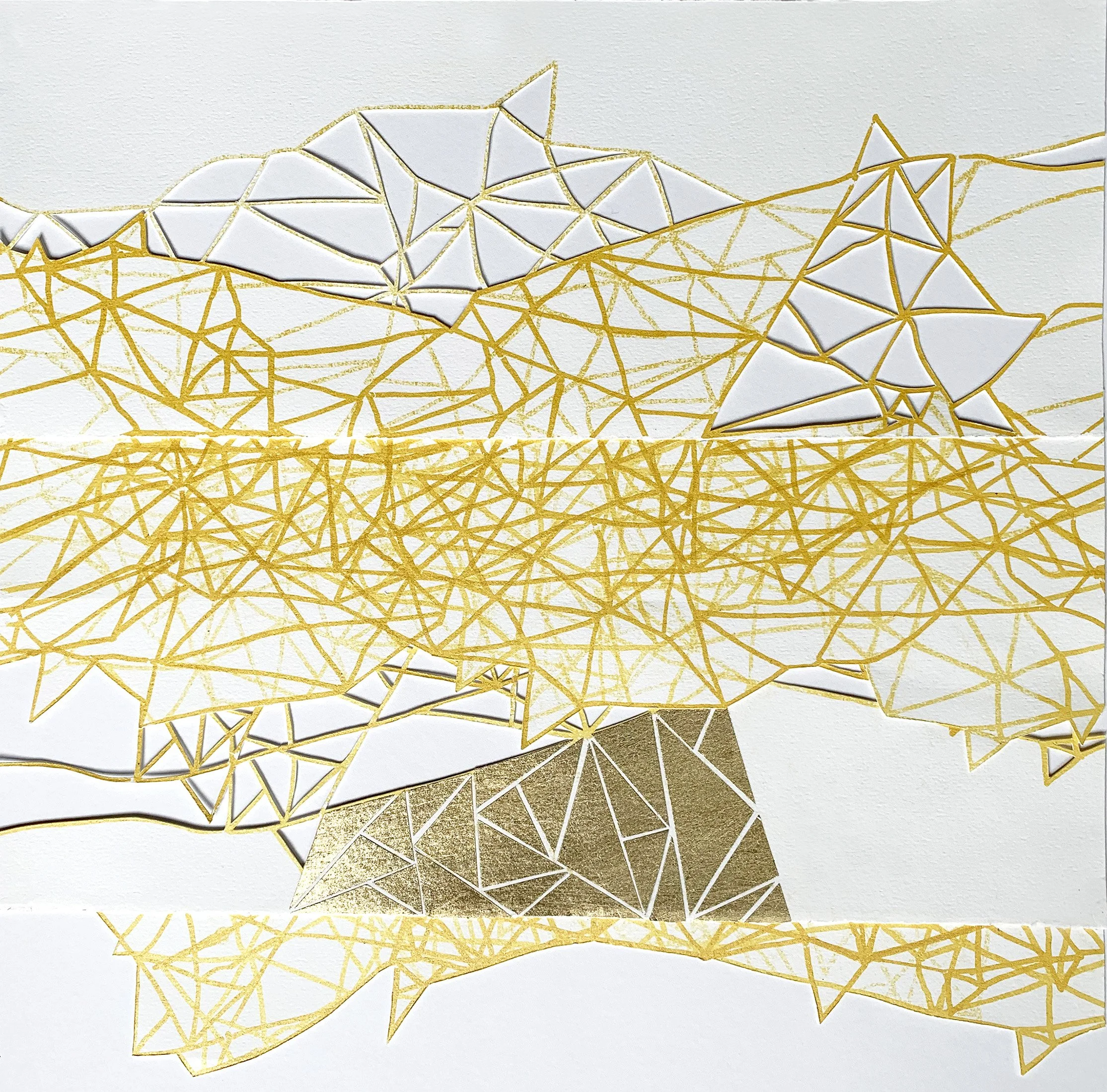 Moving Mountains [2020] | Silkscreen with paper cut, collage, and gold leaf 15”x15”