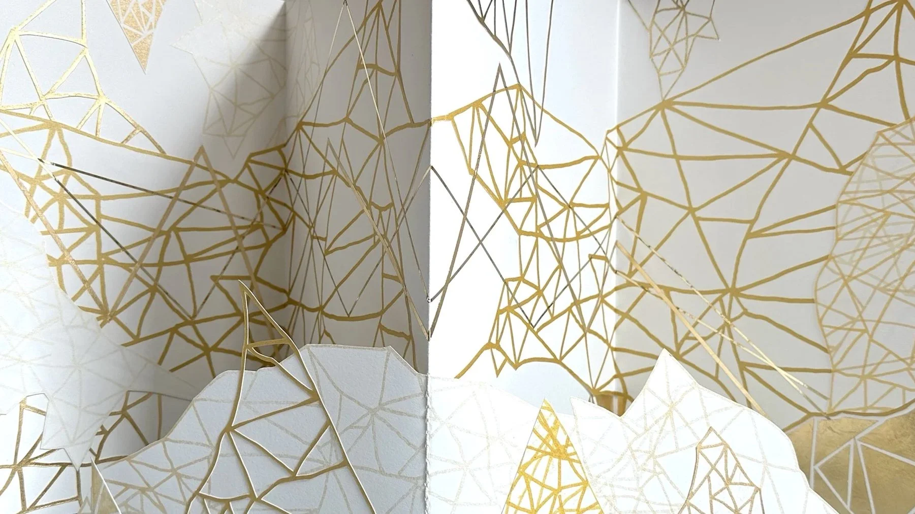After All [2023] | Silkscreen with paper cut, collage, and gold leaf Accordion Book 14”x36”